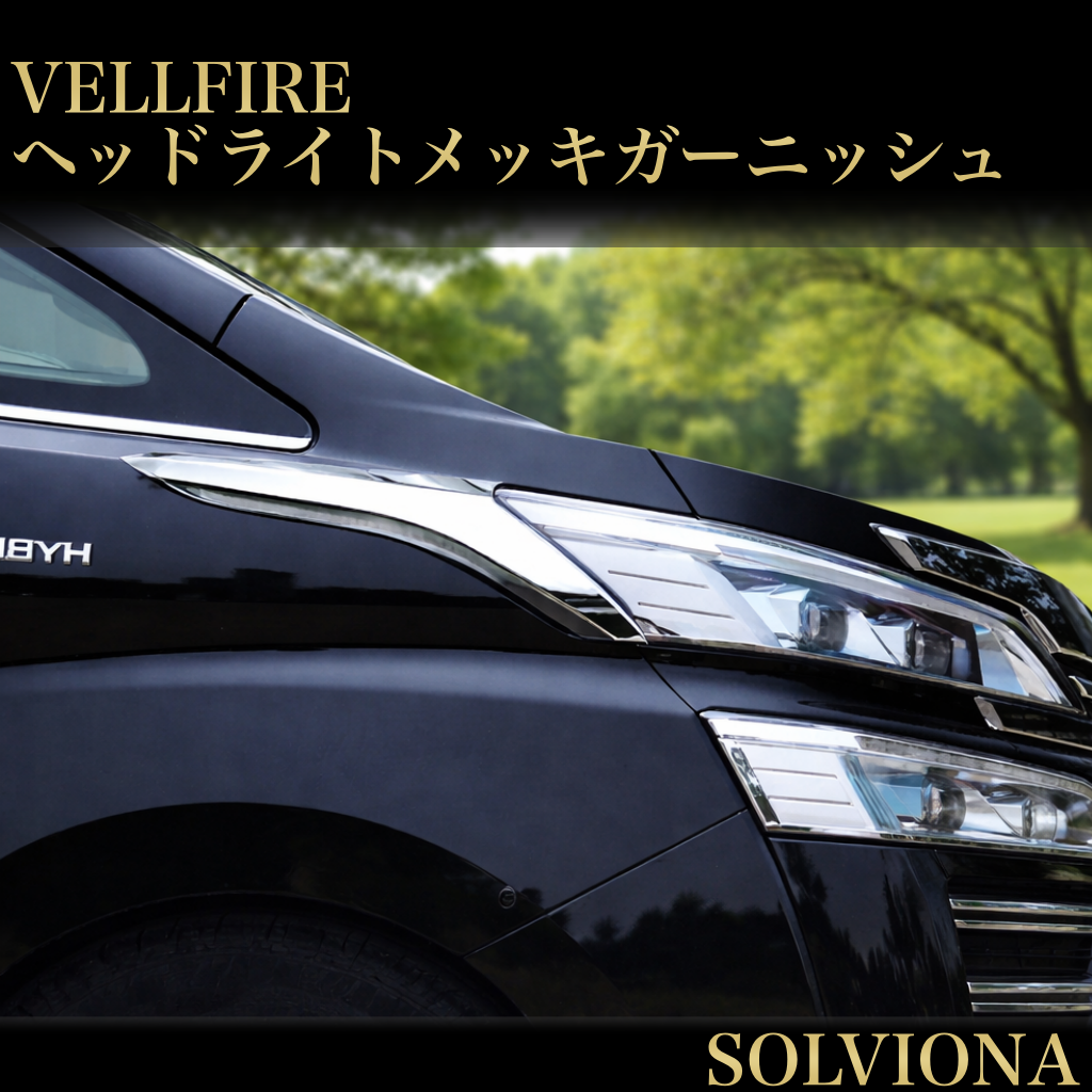 ヴェルファイア 30系 ヘッドライトガーニッシュ 前期後期 サイドガーニッシュ メッキカバー トリムガーニッシュ 鏡面 カスタム ドレスアップ 全グレード対応 VELLFIRE 2ピース 簡単取付 ABS 高品質|SOLVIONA
